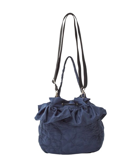 巾着ならではの丸みのあるフォルムは、フェミニンでやわらかい印象。