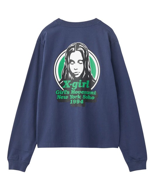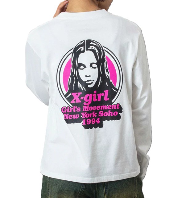 X-girl ( エックスガール ) - MESSAGE AND FACE CIRCLE LOGO L/S TEE