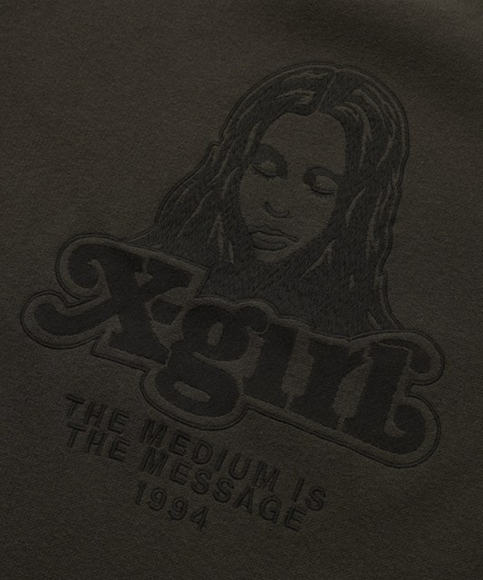 フロントは、左胸元にX-girlロゴのワンポイント刺繍入り。