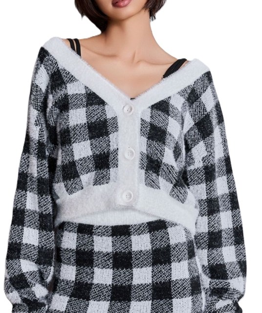 GYDA ( ジェイダ ) - CHECK shaggyニットカーディガン [GYDA ( ジェイダ ) - No.072562836901]