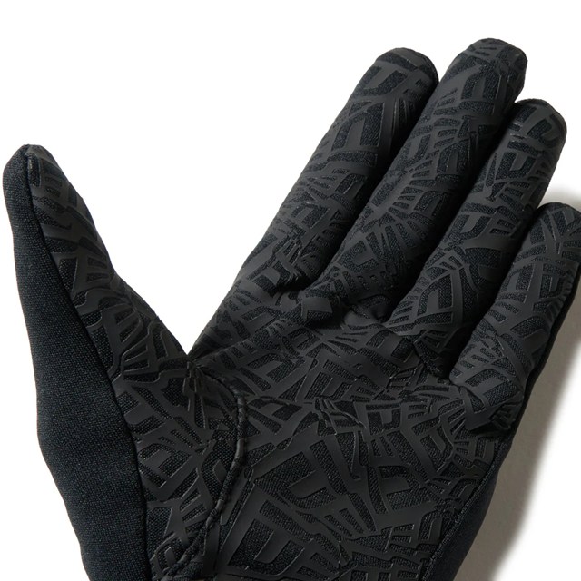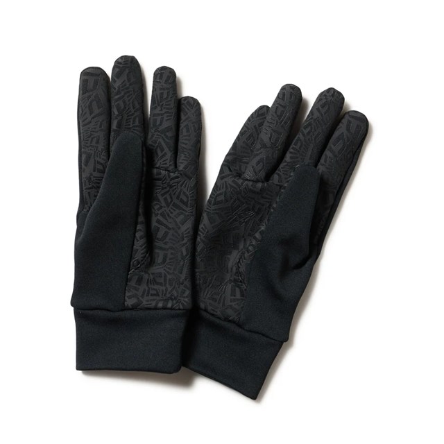 ブランドネームやロゴを各所に配したフリースウォーマーグローブ。アクリル導電性プリントを採用し、スマートフォンやタブレット端末の操作が可能です。