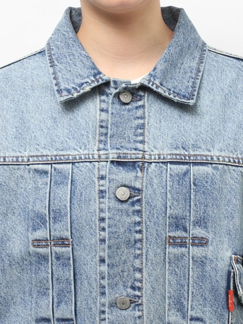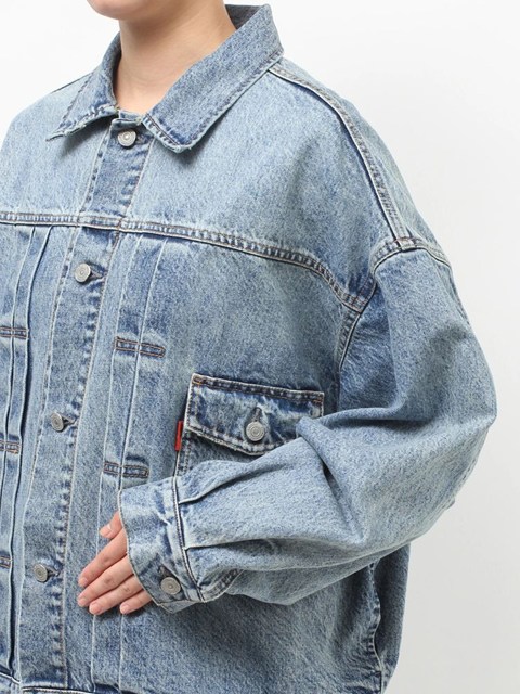 定番のビッグシルエットデニムジャケットよりもコンパクトなサイズ感。